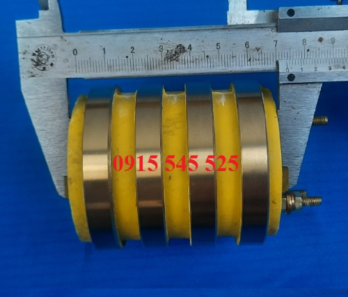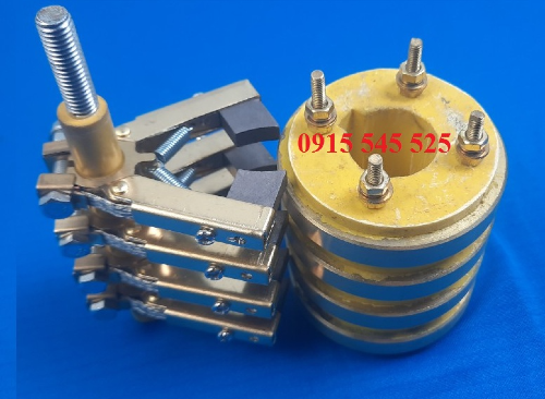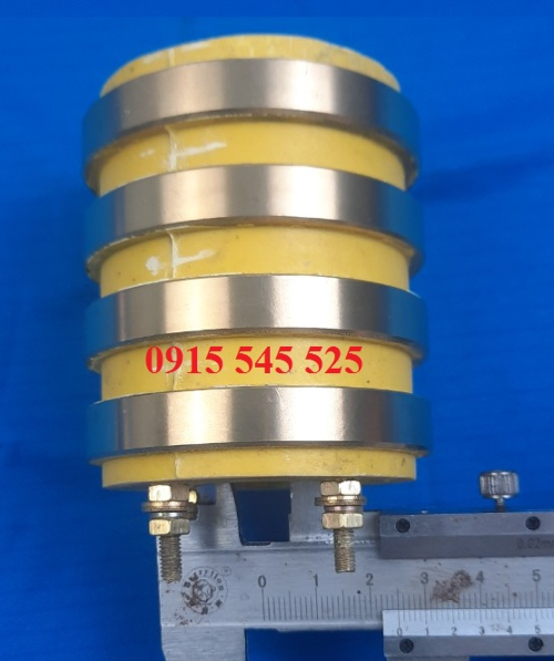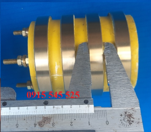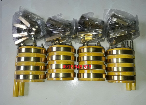 Cổ góp điện 4 pha ( 25x65x80 ) có cấu tạo gồm cổ góp có 4 pha hay gọi là cổ góp 4 vành có quy cách đường kính trục 25mm, đường kính ngoài 65mm và chiều cao 80mm, vành đồng rộng 10mm, dòng điện lấy ra tầm 20A.
