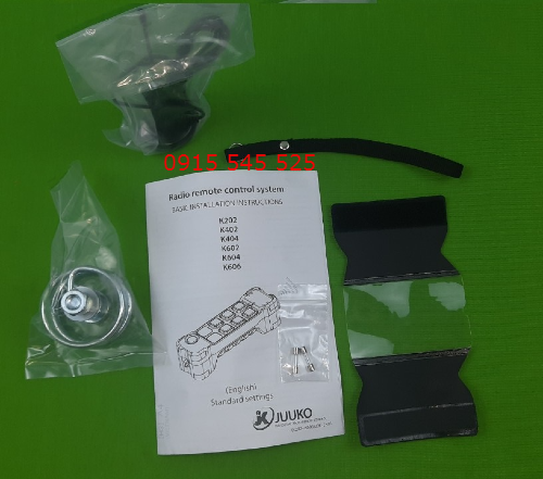 Điều khiển từ xa Juuko K602 Có 1 bộ thu được lắp vào tủ điện và chờ thu tín hiệu từ tay phát trong bán kính 100 mét và sử dụng nguồn 12-24VDC và 90-440VAC, có chức năng cài được nhiều tần số với tay phát, còn tay phát ( tay bấm) gồm 6 nút điều khiển ( 2 nút 2 cấp và 4 nút 1 cấp ) kèm 1 nút nguồn và 1 nút khởi động và có khả năng cài đặt cùng tần số nhiều bộ thu, và phụ kiện đi kèm.